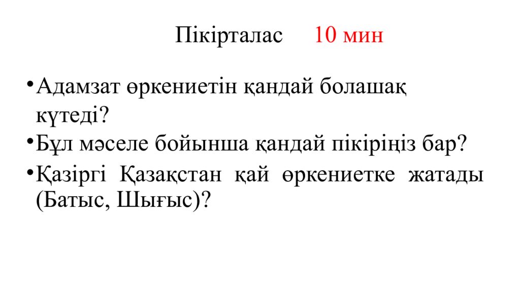 Адамзат өркениетін қандай болашақ күтеді ? Бұл мәселе бойынша қандай пікіріңіз бар? Қазіргі Қазақстан қай өркениетке жатады ( Батыс, Шығыс )?