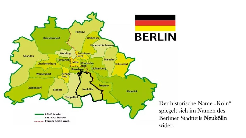 Der historische Name „Köln“ spiegelt sich im Namen des Berliner Stadtteils Neukölln wider.