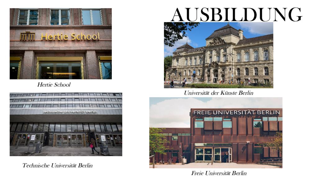 Hertie School Freie Universität Berlin AUSBILDUNG Universität der Künste Berlin Technische Universität Berlin