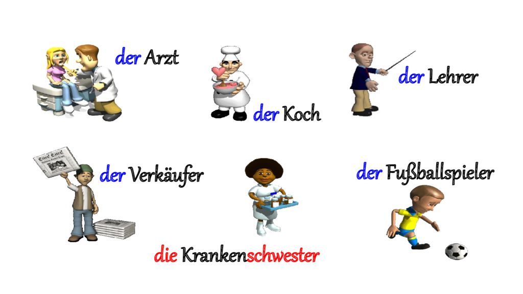 der Arzt der Fußballspieler die Kranken schwester der Verkäufer der Koch der Lehrer