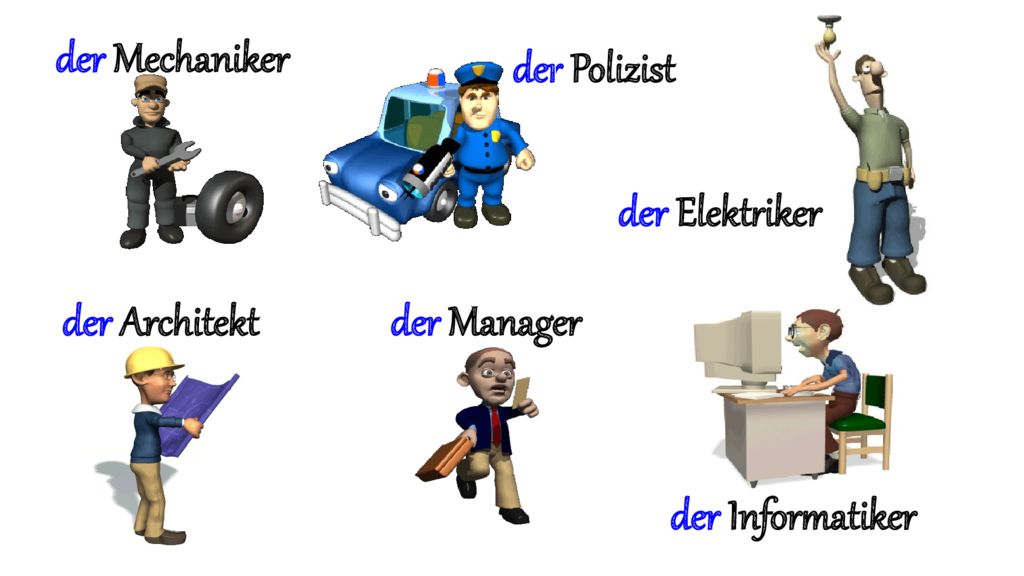 der Mechaniker der Informatiker der Manager der Architekt der Polizist der Elektriker
