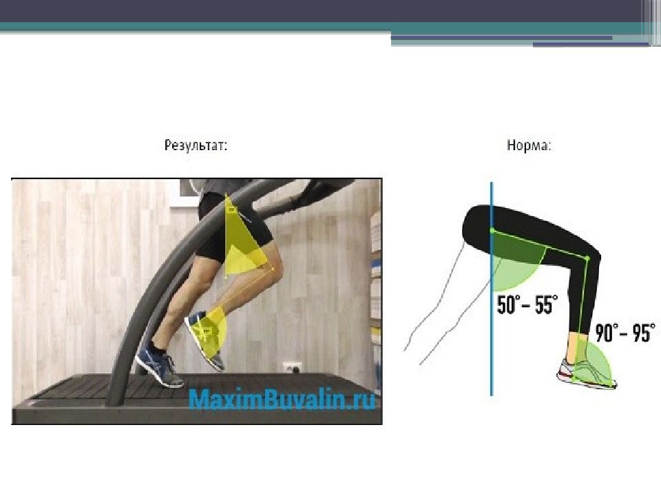 В фазу приземления В фазу приземления или соприкосновения стопы с точкой опоры пятка принимает на себя часть нагрузки. Допустимое искривление — незначительная супинация стопы, что соответствует отклонению угла 180-190°.