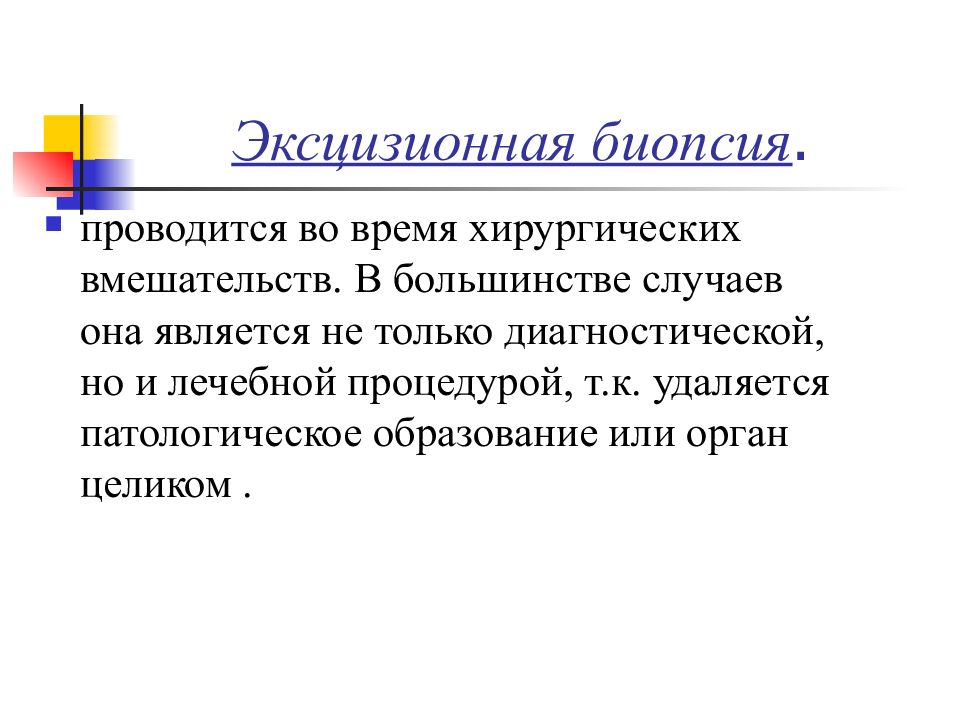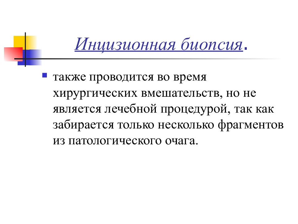 также проводится во время хирургических вмешательств, но не является лечебной процедурой, так как забирается только несколько фрагментов из патологического очага.