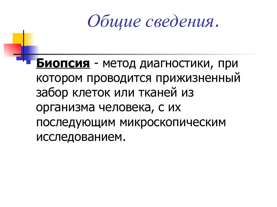 Биопсия - метод диагностики, при котором проводится прижизненный забор клеток или тканей из организма человека, с их последующим микроскопическим исследованием.