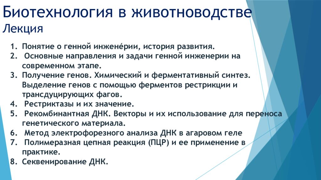 Первый слайд презентации: Биотехнология в животноводстве Лекция