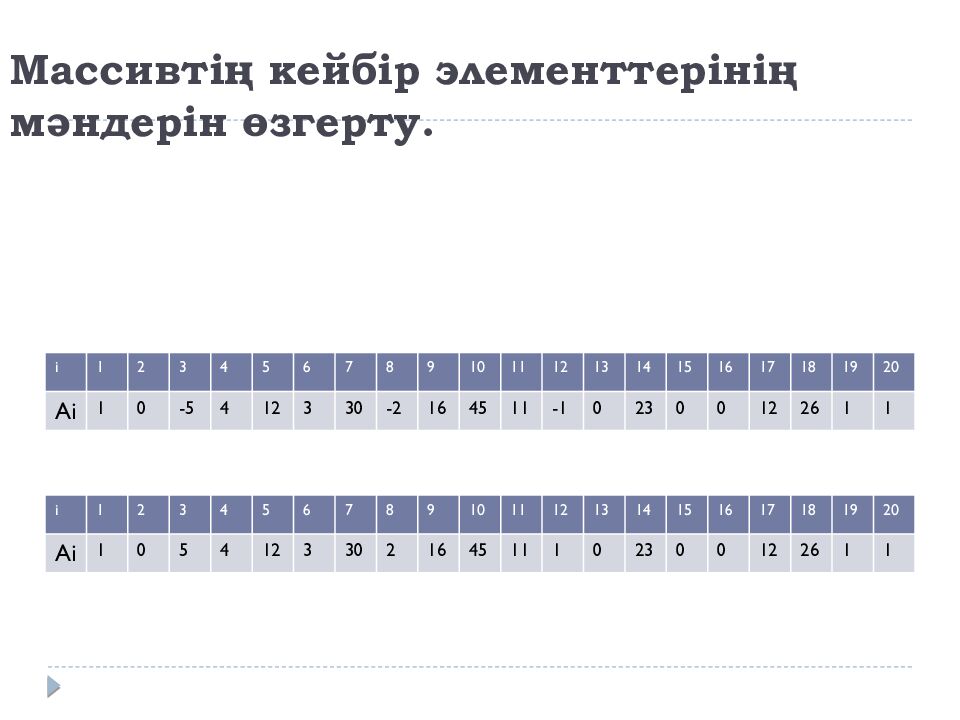 Слайд 11: Массивтің кейбір элементтерінің мәндерін өзгерту