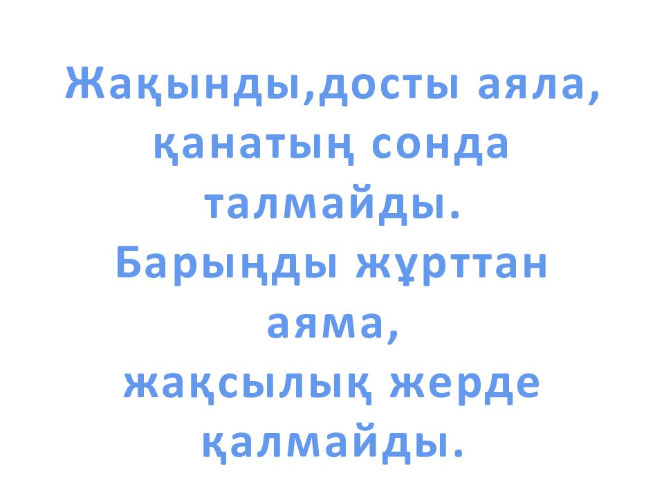 Жақсылықтан үйреніп, Боламыз біз жақсы адам. Жамандықтан жиреніп, Үлгі аламыз жақсыдан.