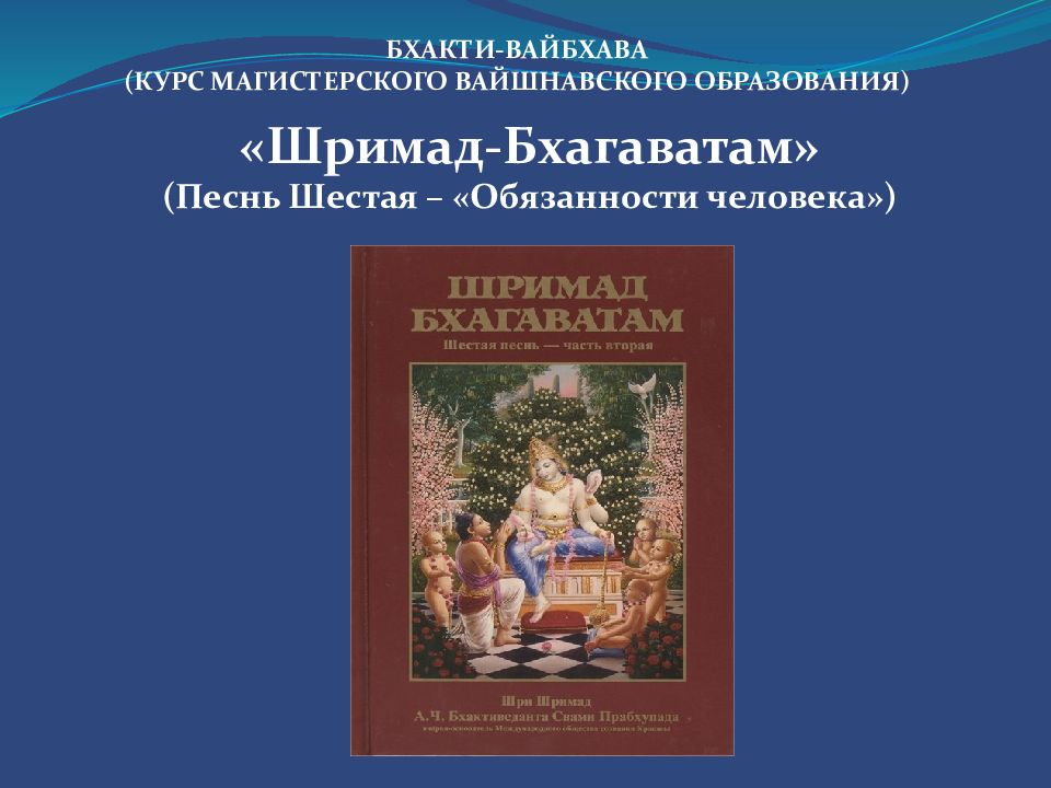 БХАКТИ-ВАЙБХАВА (КУРС МАГИСТЕРСКОГО ВАЙШНАВСКОГО ОБРАЗОВАНИЯ) «Шримад-Бхагаватам» (Песнь Шестая – «Обязанности человека»)