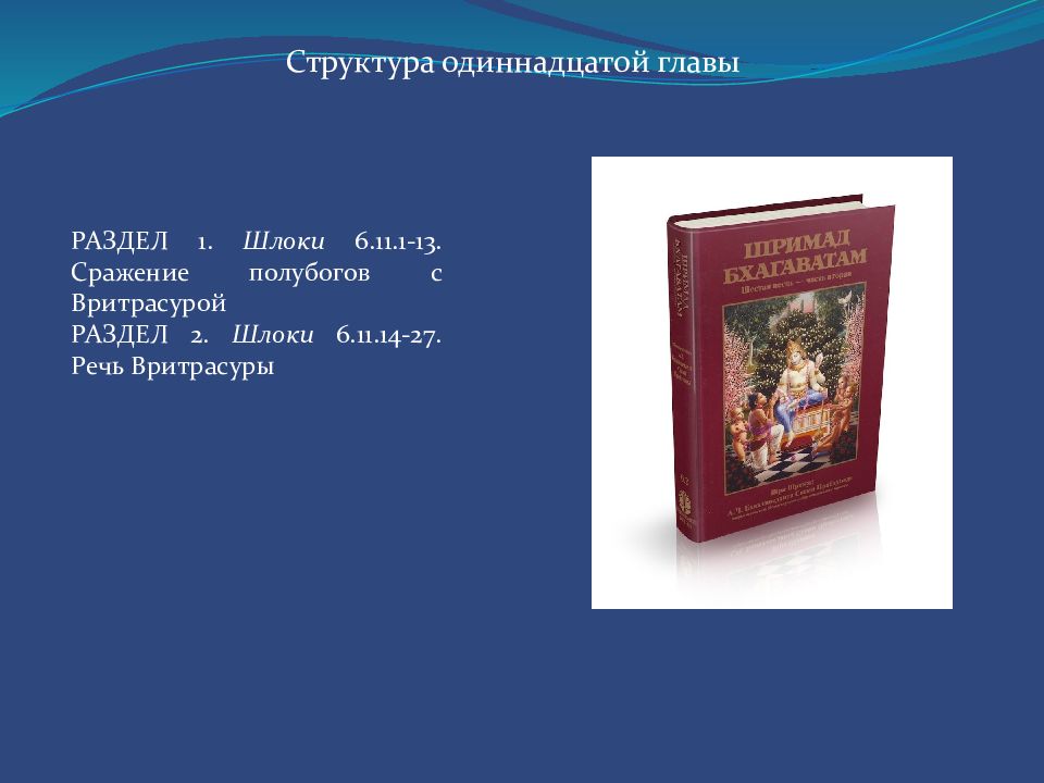 РАЗДЕЛ 1. Шлоки 6.11.1-13. Сражение полубогов с Вритрасурой РАЗДЕЛ 2. Шлоки 6.11.14-27. Речь Вритрасуры Структура одиннадцатой главы