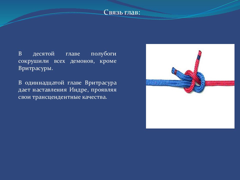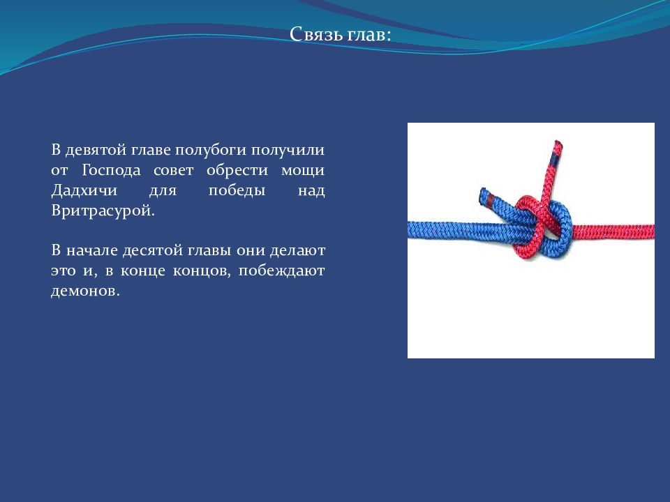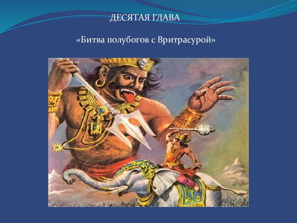 Связь глав: В девятой главе полубоги получили от Господа совет обрести мощи Дадхичи для победы над Вритрасурой. В начале десятой главы они делают это и, в конце концов, побеждают демонов.