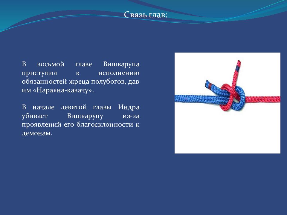 Связь глав: В восьмой главе Вишварупа приступил к исполнению обязанностей жреца полубогов, дав им «Нараяна-кавачу». В начале девятой главы Индра убивает Вишварупу из-за проявлений его благосклонности к демонам.
