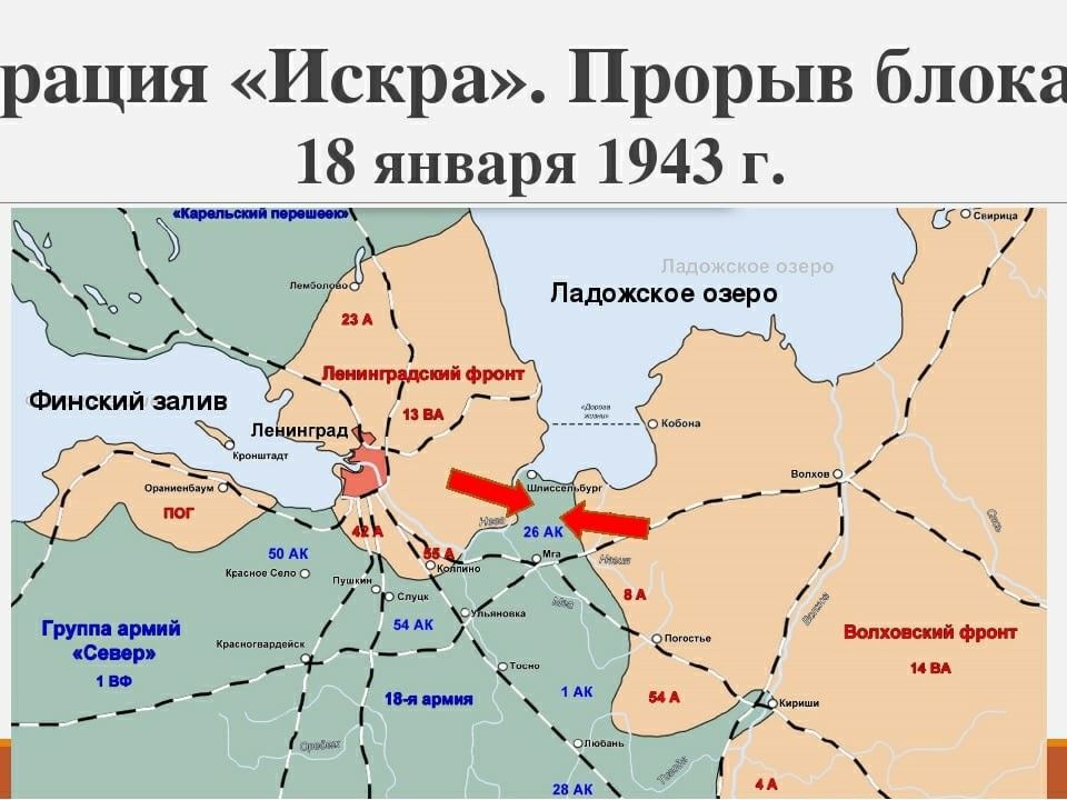 12 января 1943 года войска Ленинградского и Волховского фронтов перешли в наступление. Через 6 дней ожесточённых боёв кольцо блокады было прорвано. Полное снятие блокады