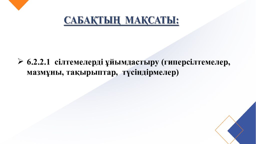 6.2.2.1 сілтемелерді ұйымдастыру (гиперсілтемелер, мазмұны, тақырыптар, түсіндірмелер)