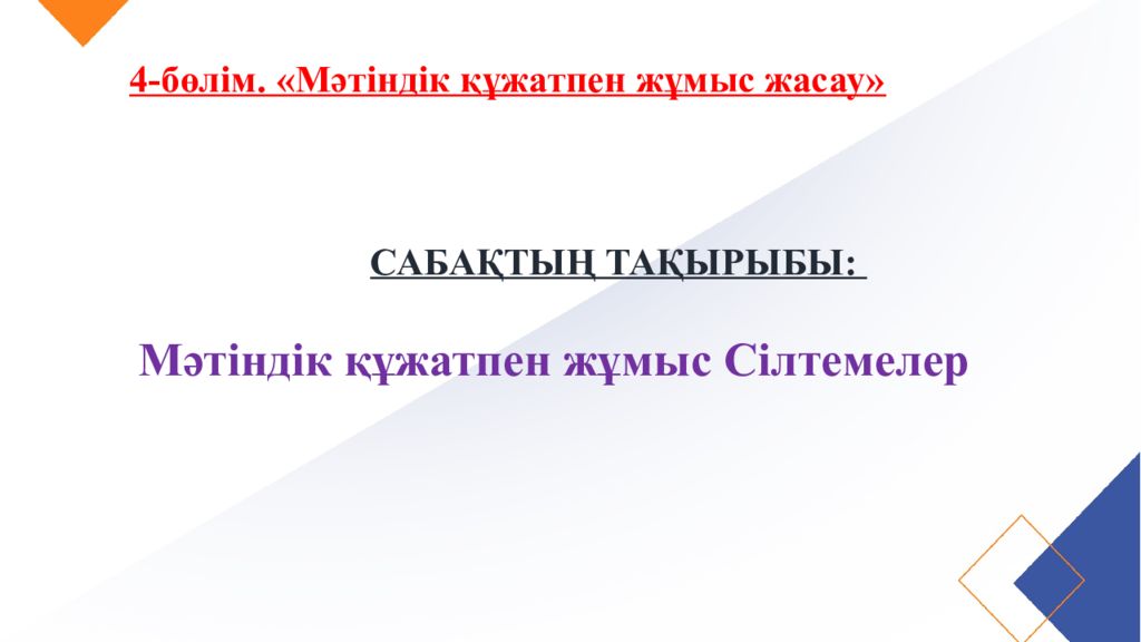 4-бөлім. «Мәтіндік құжатпен жұмыс жасау » САБАҚТЫҢ ТАҚЫРЫБЫ: Мәтіндік құжатпен жұмыс Сілтемелер