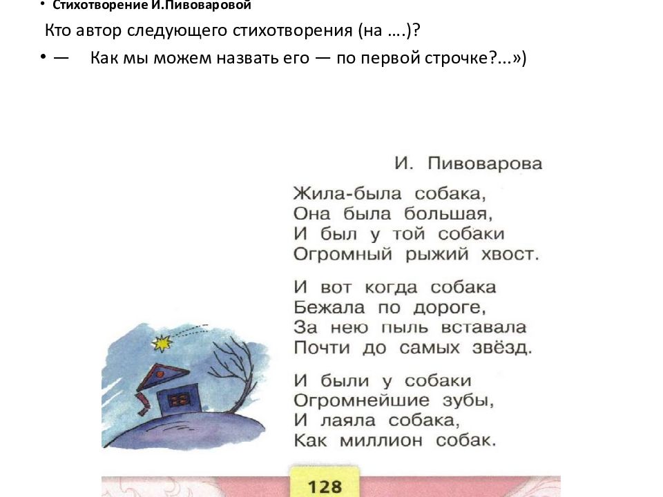 Стихотворение И.Пивоваровой Кто автор следующего стихотворения (на ….)? — Как мы можем назвать его — по первой строчке?...»)