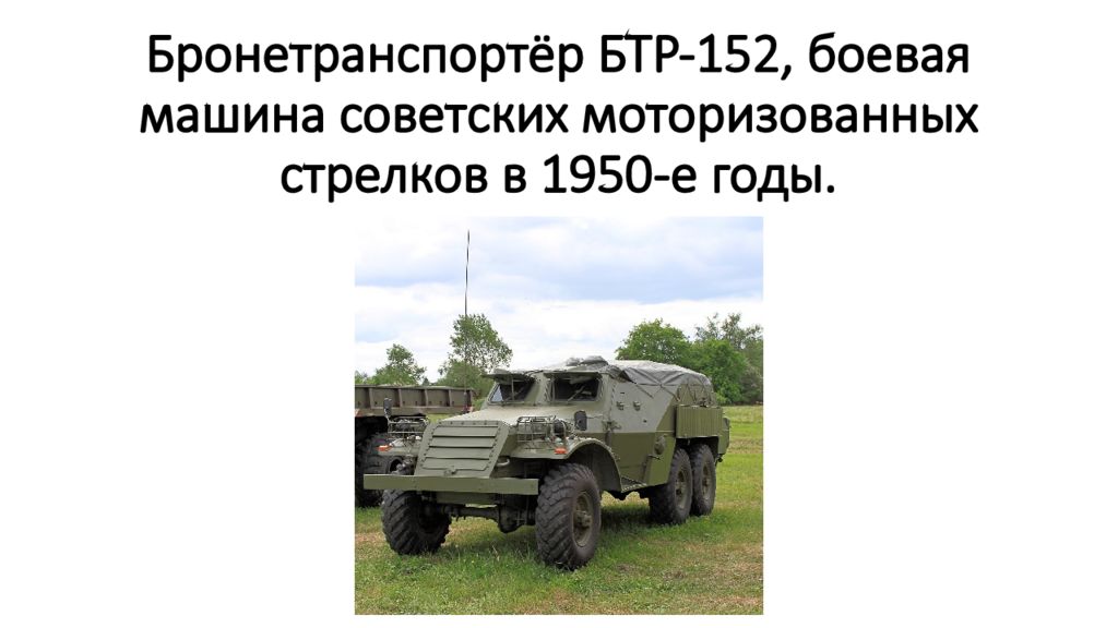 Слайд 16: Бронетранспортёр БТР-152, боевая машина советских моторизованных стрелков в 1950-е годы