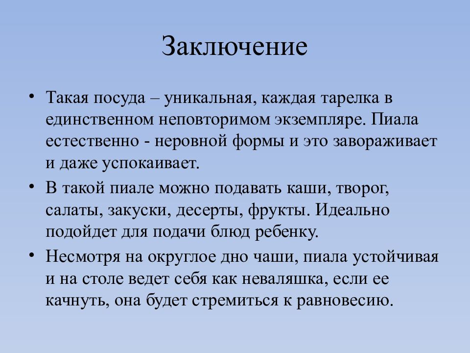 Такая посуда – уникальная, каждая тарелка в единственном неповторимом экземпляре. Пиала естественно - неровной формы и это завораживает и даже успокаивает. В такой пиале можно подавать каши, творог, салаты, закуски, десерты, фрукты. Идеально подойдет для подачи блюд ребенку. Несмотря на округлое дно чаши, пиала устойчивая и на столе ведет себя как неваляшка, если ее качнуть, она будет стремиться к равновесию.