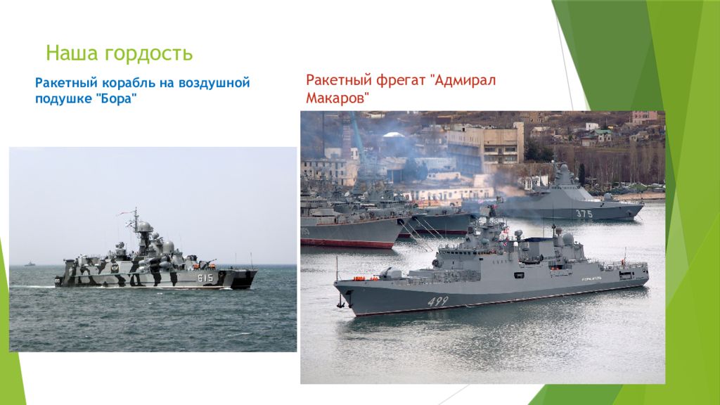 Ракетный корабль на воздушной подушке "Бора" Ракетный фрегат "Адмирал Макаров"