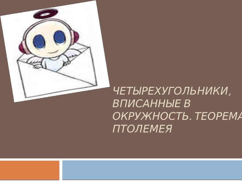 Первый слайд презентации: Четырехугольники, вписанные в окружность. Теорема Птолемея