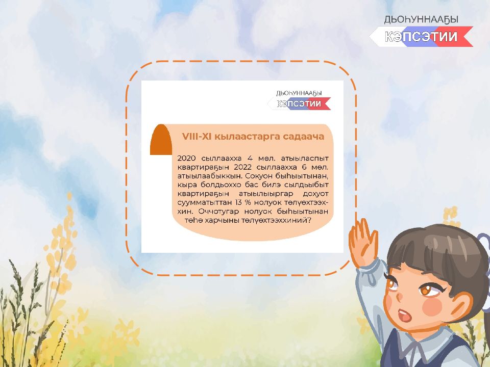 Последний слайд презентации: Чиэһинэй быһыы – с айдыыга кылаат »
