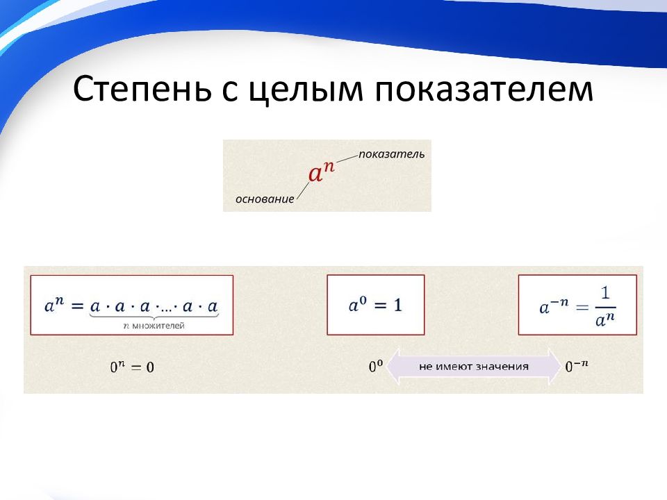 Слайд 6: Свойства степени с целым показателем