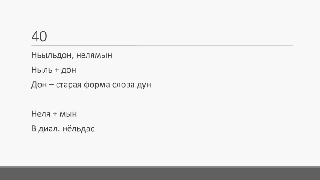 Ньыльдон, нелямын Ныль + дон Дон – старая форма слова дун Неля + мын В диал. нёльдас