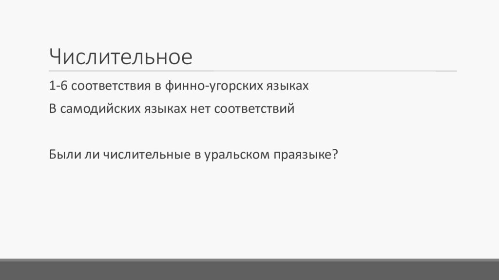 1-6 соответствия в финно-угорских языках В самодийских языках нет соответствий Были ли числительные в уральском праязыке?