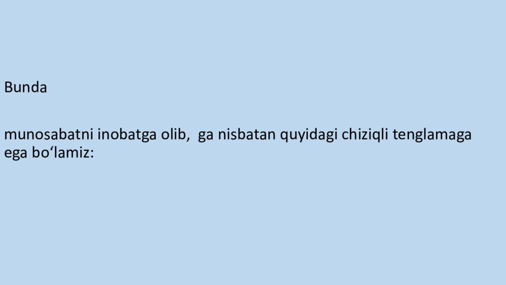 Bunda munosabatni inobatga olib, ga nisbatan quyidagi chiziqli tenglamaga ega bo‘lamiz :