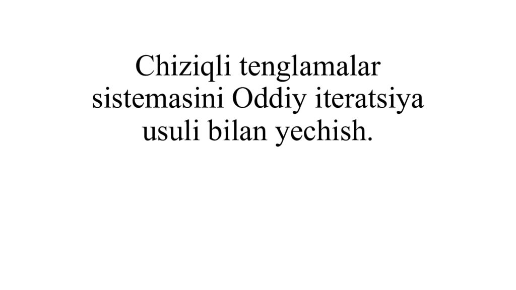 Первый слайд презентации: Chiziqli tenglamalar sistemasini Oddiy iteratsiya usuli bilan yechish