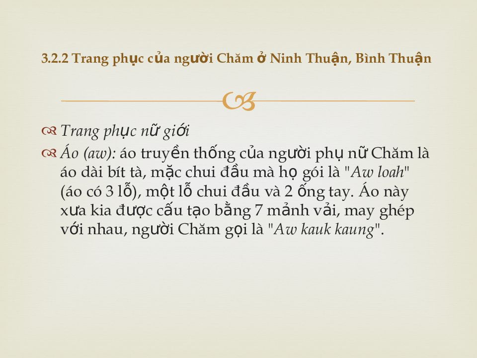 Слайд 28: 3.2.2 Trang phục của người Chăm ở Ninh Thuận, Bình Thuận