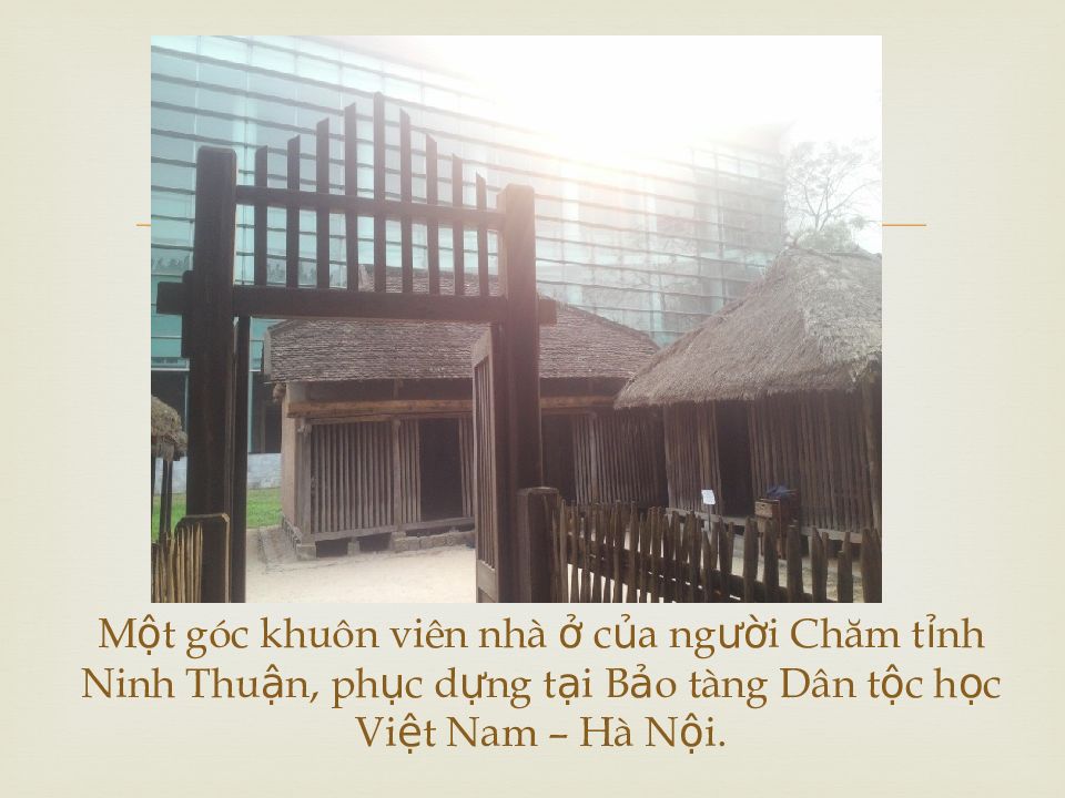Слайд 9: Một góc khuôn viên nhà ở của người Chăm tỉnh Ninh Thuận, phục dựng tại Bảo tàng Dân tộc học Việt Nam – Hà Nội