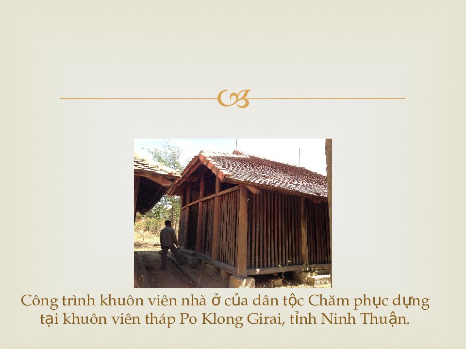 Слайд 16: Công trình khuôn viên nhà ở của dân tộc Chăm phục dựng tại khuôn viên tháp Po Kl o ng G i ra i, tỉnh Ninh Thuận
