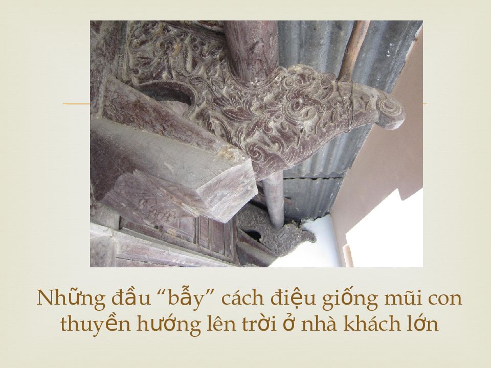 Слайд 10: Những đầu “ bẫy ” cách điệu giống mũi con thuyền hướng lên trời ở nhà khách lớn