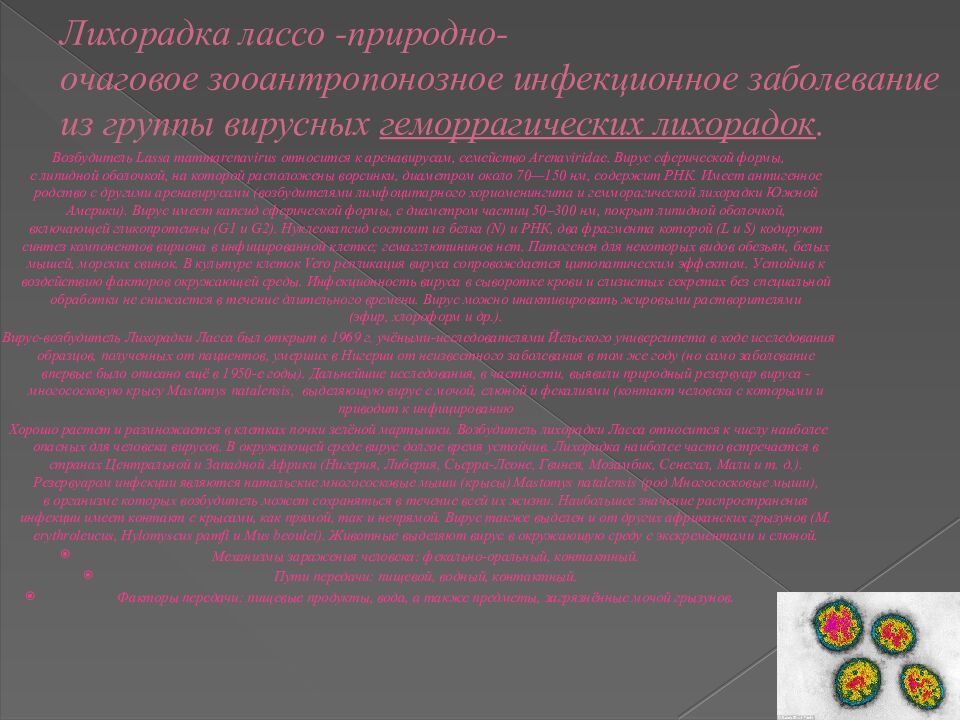Слайд 10: Лихорадка лассо - природно - очаговое зооантропонозное инфекционное заболевание из группы вирусных геморрагических лихорадок