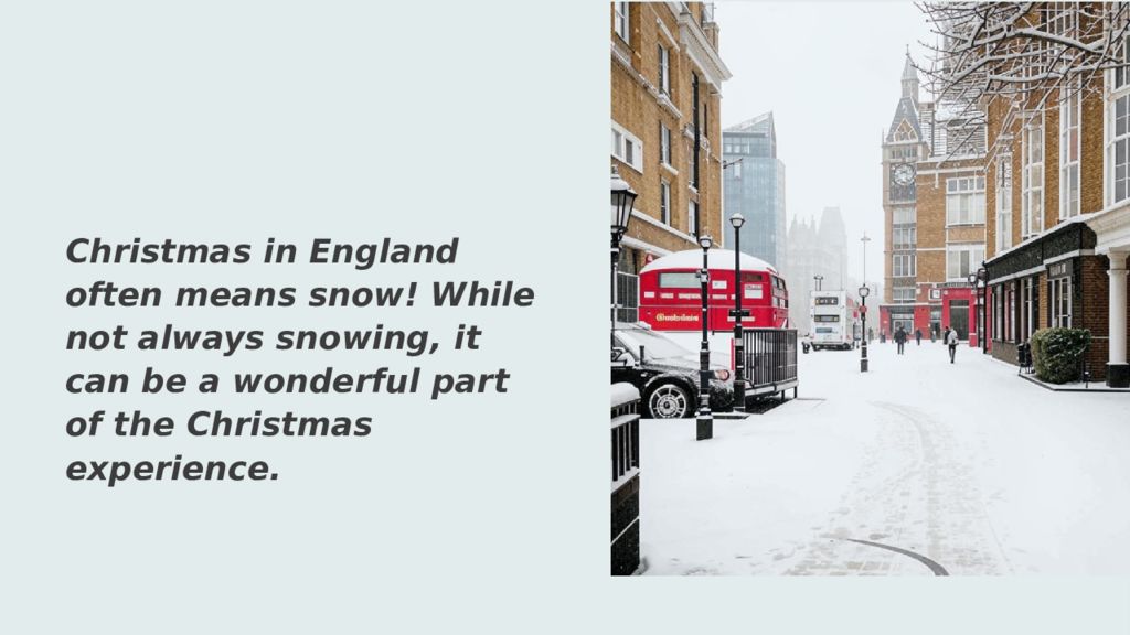 Christmas in England often means snow! While not always snowing, it can be a wonderful part of the Christmas experience.