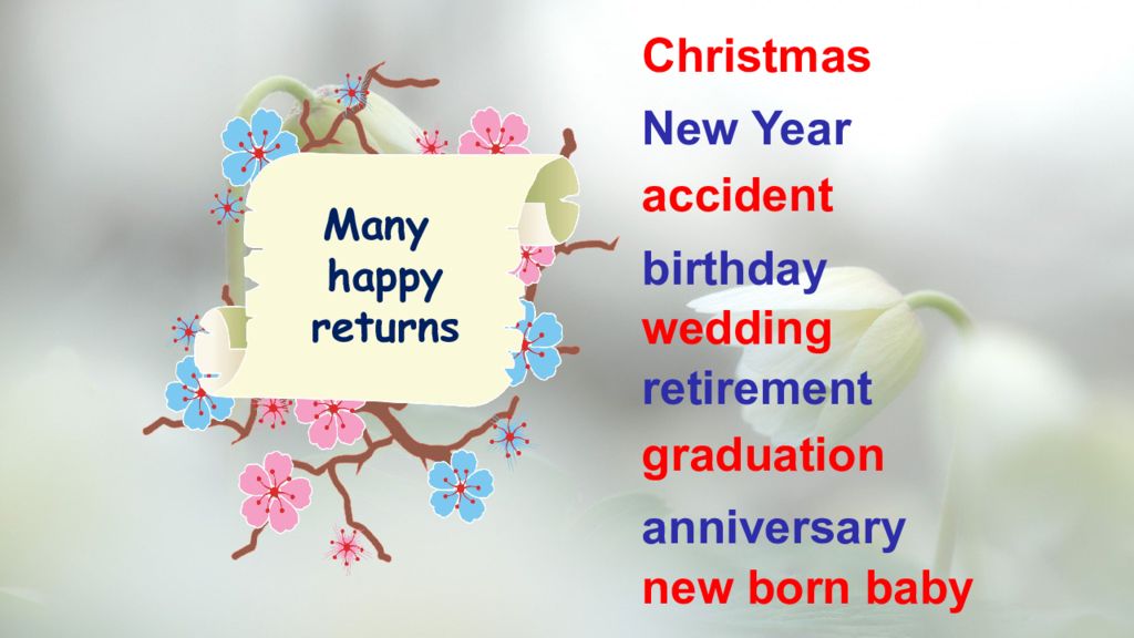 Christmas New Year accident birthday wedding retirement graduation anniversary new born baby Many happy returns
