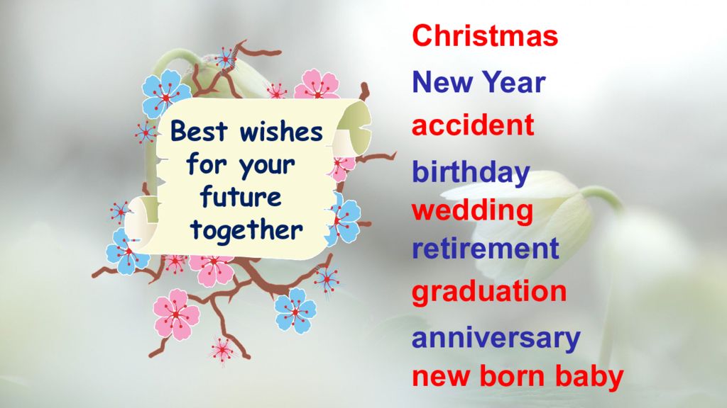 Christmas New Year accident birthday wedding retirement graduation anniversary new born baby Best wishes for your future together