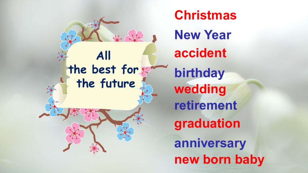 Christmas New Year accident birthday wedding retirement graduation anniversary new born baby All the best for the future