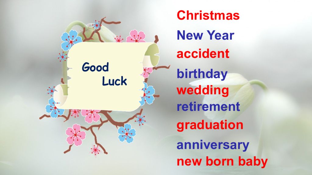 Christmas New Year accident birthday wedding retirement graduation anniversary new born baby Good Luck