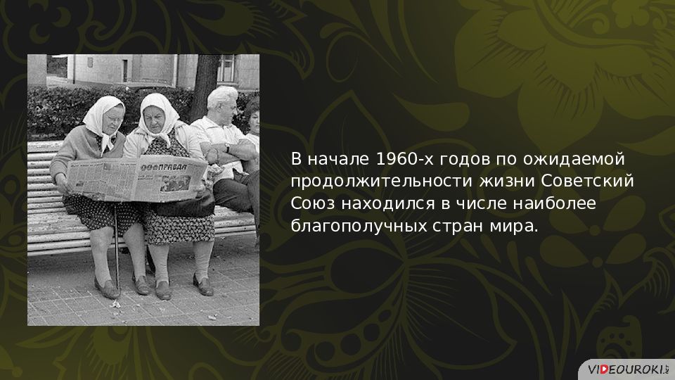 В начале 1960-х годов по ожидаемой продолжительности жизни Советский Союз находился в числе наиболее благополучных стран мира.