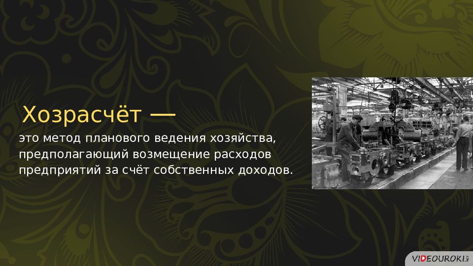 Хозрасчёт — это метод планового ведения хозяйства, предполагающий возмещение расходов предприятий за счёт собственных доходов.