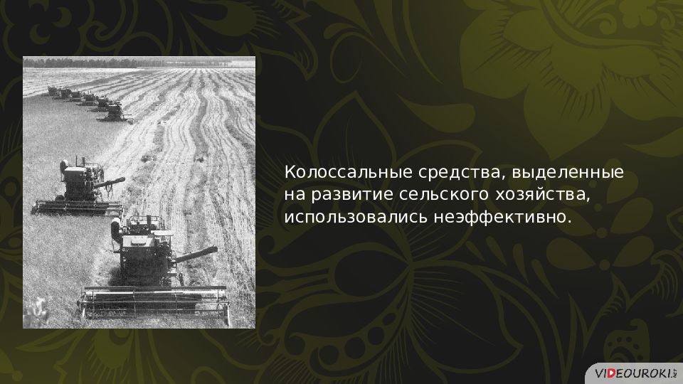 Колоссальные средства, выделенные на развитие сельского хозяйства, использовались неэффективно.