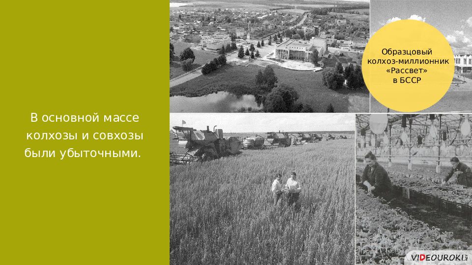 В основной массе колхозы и совхозы были убыточными. Образцовый колхоз-миллионник «Рассвет» в БССР