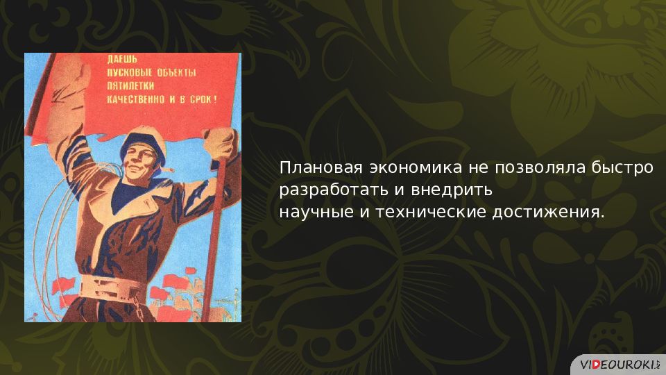 Плановая экономика не позволяла быстро разработать и внедрить научные и технические достижения.