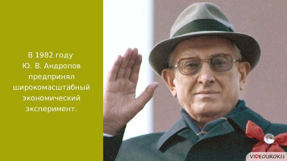 В 1982 году Ю. В. Андропов предпринял широкомасштабный экономический эксперимент.