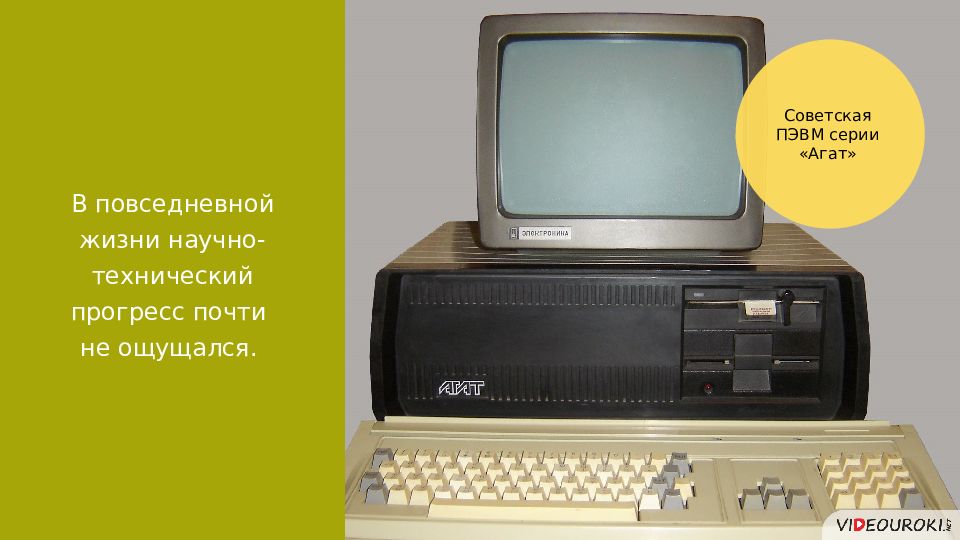 В повседневной жизни научно-технический прогресс почти не ощущался. Советская ПЭВМ серии «Агат»