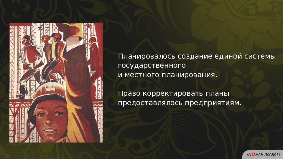 Планировалось создание единой системы государственного и местного планирования. Право корректировать планы предоставлялось предприятиям.