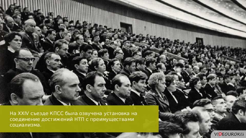 На XXIV съезде КПСС была озвучена установка на соединение достижений НТП с преимуществами социализма.
