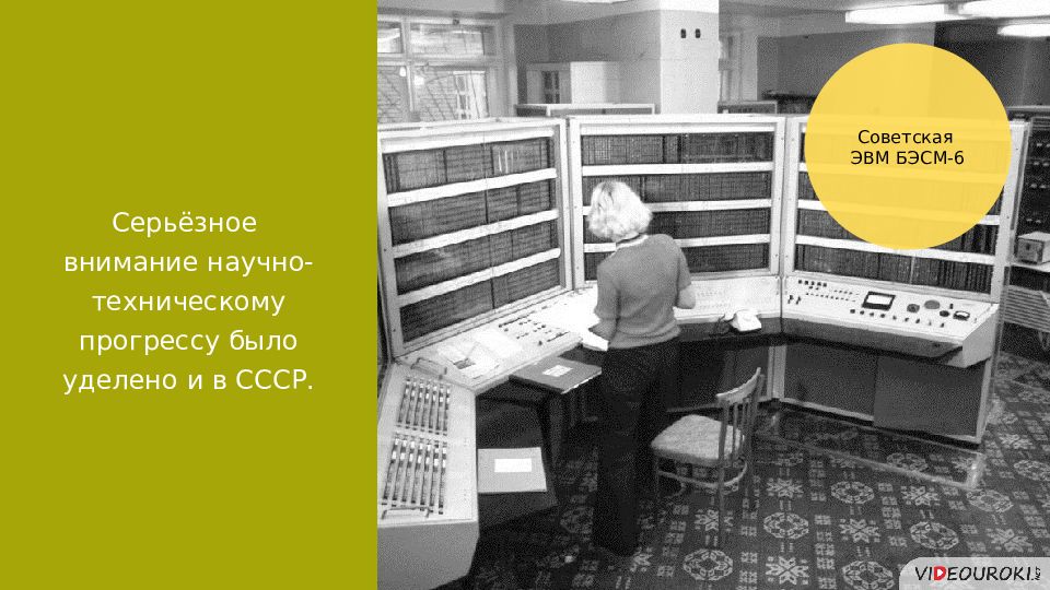 Серьёзное внимание научно-техническому прогрессу было уделено и в СССР. Советская ЭВМ БЭСМ-6