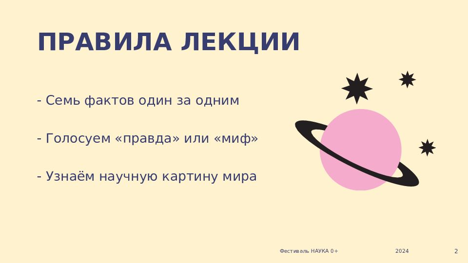 Семь фактов один за одним Голосуем «правда» или «миф» Узнаём научную картину мира 2 Фестиваль НАУКА 0+ 2024